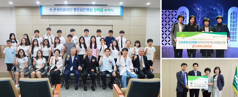 은성의료재단은 저소득층의 교육기회 확대를 위해 성적우수자 뿐만 아니라, 가난한 학생들에게도 장학금을 지원해오고 있다.